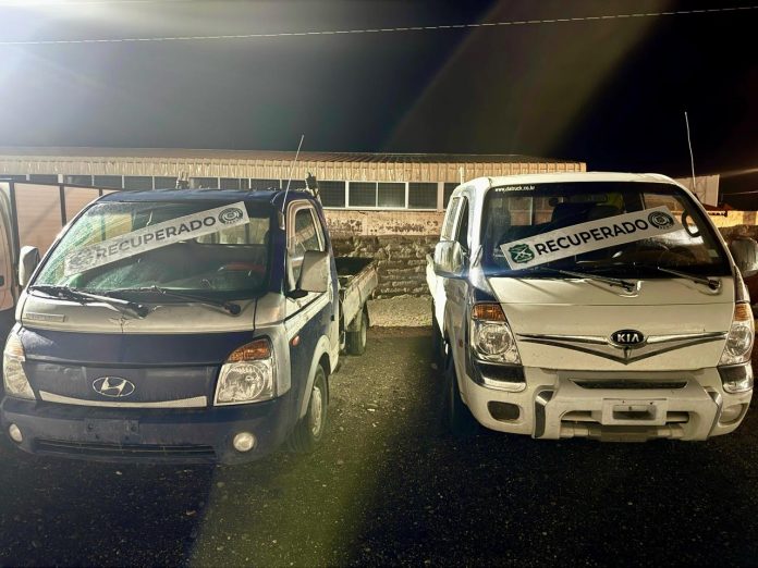 En una acción conjunta del Equipo Multidisciplinario conformado por la Sección de Encargo y Búsqueda de Vehículos (SEBV), OS9 y OS7, se llevaron a cabo fiscalizaciones en la comuna de Colchane, logrando la recuperación de dos vehículos marca Kia, modelo Porter, que transitaban a altas horas de la noche, específicamente a las 00:00 horas, sin portar sus patentes.