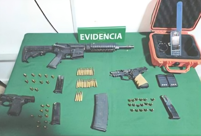 Las armas incautadas fueron una carabina semiautomática marca Luvo, calibre 5,56 mm., de carácter de guerra, con 27 cartuchos y dos pistolas marca Bersa 9 mm., con tres cargadores y 39 cartuchos, además de dos teléfonos celulares y uno satelital.