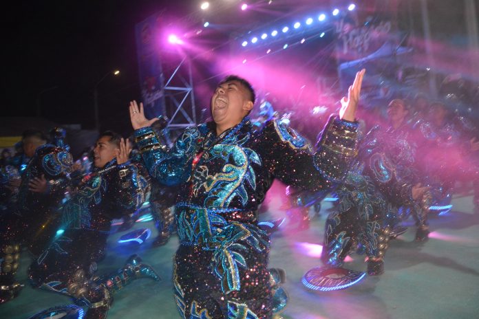 La jornada inaugural estuvo marcada por un vibrante pasacalle de convite, en el que agrupaciones folclóricas presentaron danzas tradicionales como tinkus, tobas, sayas y morenadas, recorriendo la avenida Los Cóndores y contagiando de alegría a los presentes. La ceremonia de apertura incluyó el tradicional lanzamiento del portón y una pawa, ceremonia ancestral andina que augura los mejores deseos para la celebración.