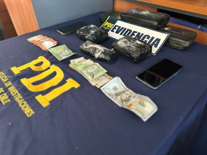 En total, se incautaron 4,2 kilos de clorhidrato de cocaína, además de dinero en efectivo en pesos chilenos, soles peruanos y dólares americanos. Por instrucción del Ministerio Público, la imputada fue puesta a disposición del Juzgado de Garantía para su control de detención y formalización.