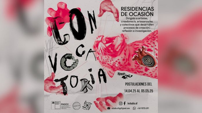 El espacio cultural “Estudio OF” lanza la Convocatoria Residencia de Ocasión 2025, una invitación abierta a artistas, colectivos y agentes creativos de la Región de Tarapacá a desarrollar procesos de investigación, creación y reflexión desde su oficina ubicada en Serrano 245, en miras de fortalecer el ecosistema artístico local desde el diálogo, la colaboración y el arraigo territorial.