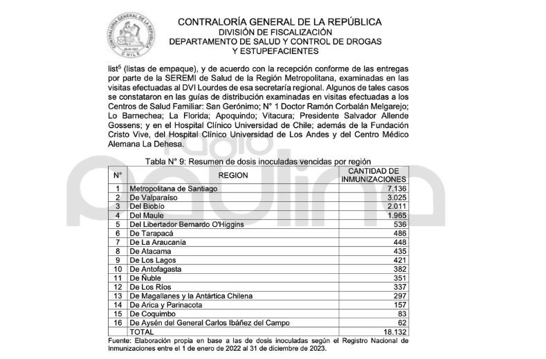 El documento, que detalla los resultados de una auditoría realizada entre 2022 y 2023, revela una discrepancia significativa entre la cantidad de vacunas recibidas y las registradas en el sistema de control de stock.