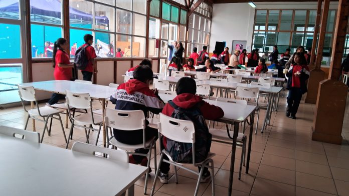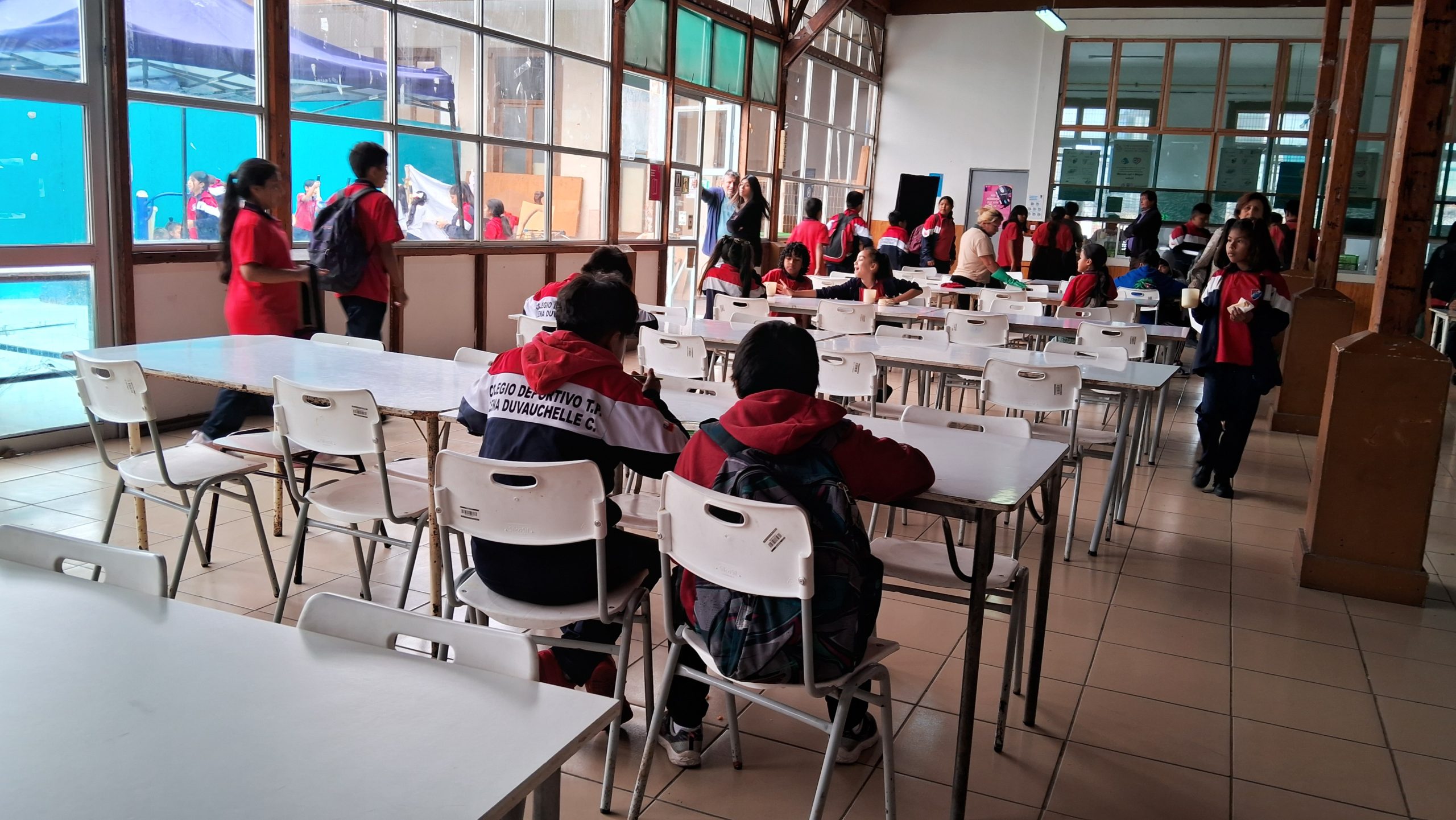 Carolina Vargas, Seremi de Educación y Marcelo Rebolledo. Director Regional de JUNAEB, acompañaron a los estudiantes de enseñanza básica y media del Liceo Deportivo Técnico Profesional Elena Duvauchelle durante una jornada de desayuno.