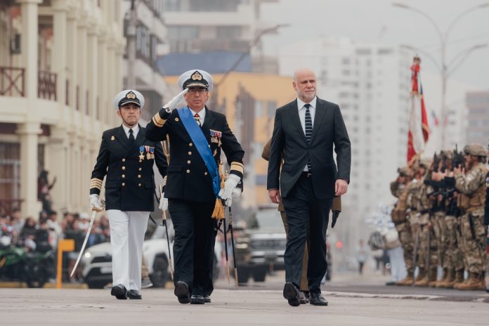 En la región de Tarapacá, el secretario de Estado participó en el tradicional desfile de las Fuerzas Armadas y Carabineros junto a autoridades de la Armada de Chile, representada por el Jefe de la Escuadra, Daniel Muñoz, el Gobernador Regional, José Miguel Carvajal, la delegada presidencial regional, Ivonne Donoso, parlamentarios y otras autoridades locales.