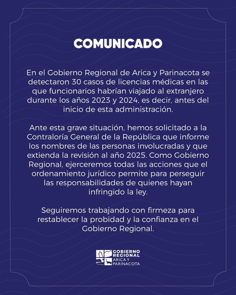 El Gobierno Regional (GORE) de Arica se encuentra en el listado de las 788 instituciones públicas con licencias médicas irregulares denunciadas por la Contraloría General de la República (CGR).