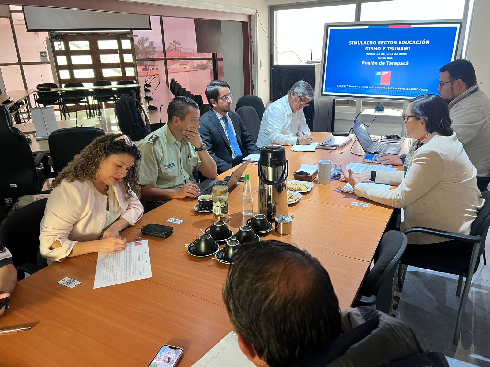 El delegado presidencial regional (s) de Tarapacá, Pablo Valenzuela, participó en una reunión de coordinación en las oficinas de Senapred para afinar los detalles del simulacro de sismo seguido de tsunami que se realizará el próximo 24 de junio, a las 10:00 horas, en todos los niveles del sector educacional de la región.