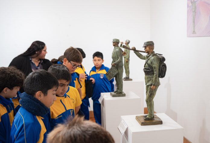 La muestra, facilitada por el Museo Marítimo Nacional de Valparaíso y coordinada junto a la Compañía Minera Doña Inés de Collahuasi, fue creada por el escultor y cirujano plástico Héctor Valdés, quien desarrolló 23 esculturas de bronce que representan a figuras emblemáticas como Arturo Prat, Bernardo O’Higgins, Manuel Blanco Encalada y Arturo Fernández Vial.