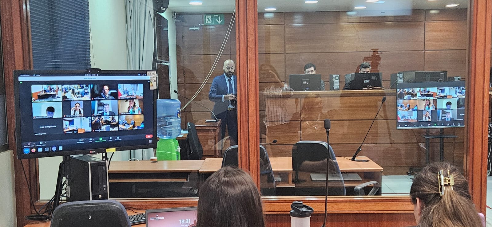 Para resguardar la seguridad de todos los intervinientes y de la propia comunidad regional, el juicio se realiza de forma telemática. Por ello, las víctimas y los testigos civiles y policiales declararán vía online, y los imputados, fiscales y abogados querellantes también se encuentran conectados de forma telemática