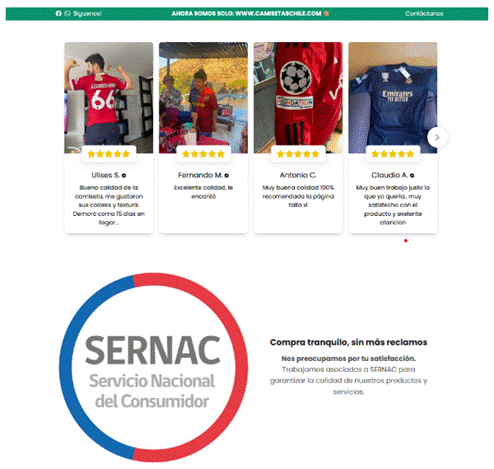 El SERNAC, dentro de sus labores de monitoreo, identificó cuatro sitios web, dos de los cuales aún están vigentes, los que, junto a la publicación de sus productos, utilizan el logo institucional del Servicio, con el siguiente mensaje: