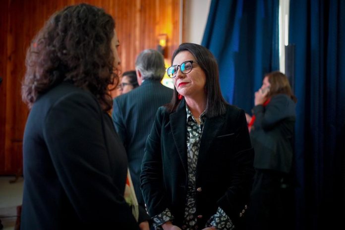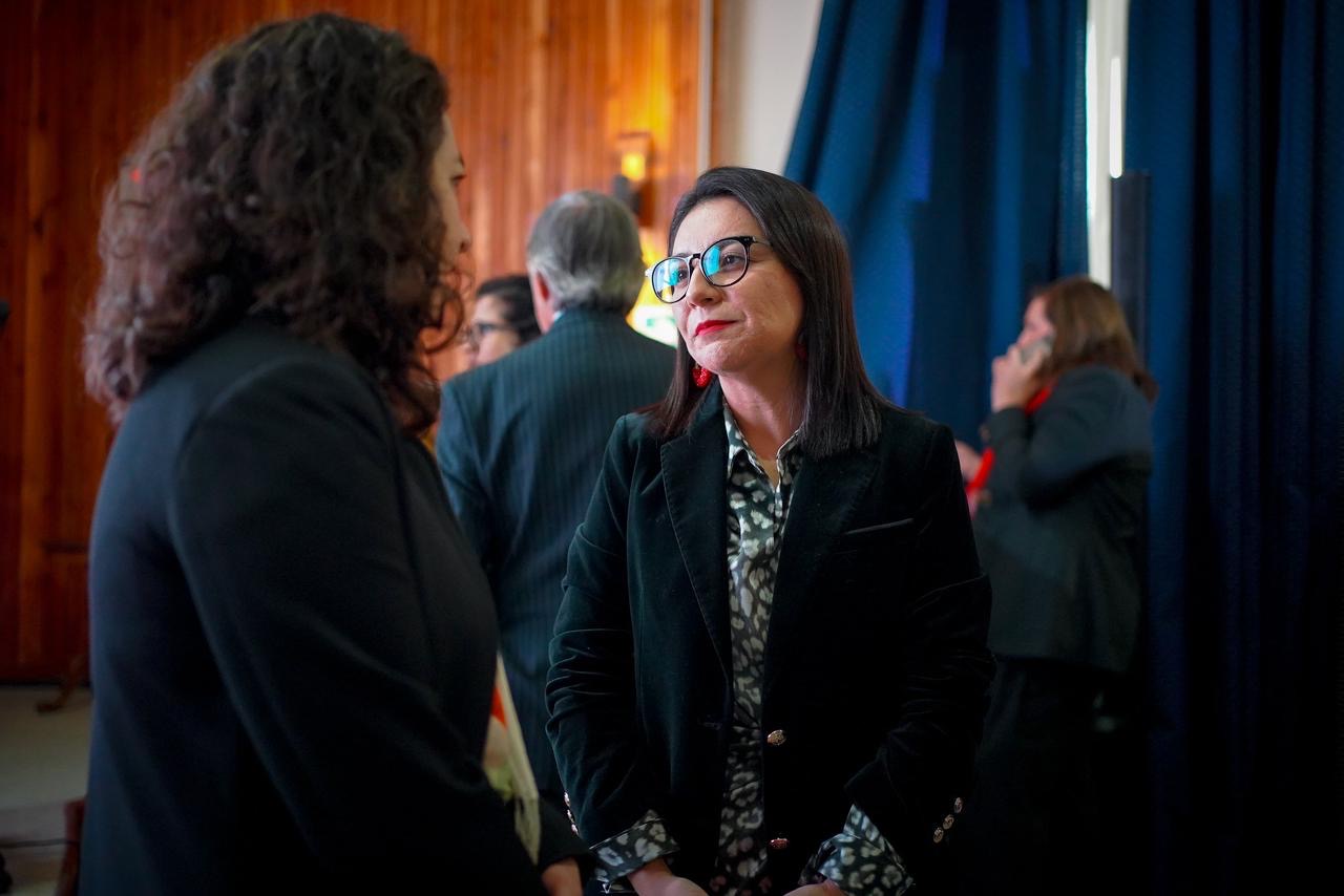 En medio de la Cuenta pública Participativa, la delegada estuvo acompañada por la ministra de Desarrollo Social y Familia, Javiera Tiro, la subsecretaria de Evaluación Social, Paula Poblete, y el subsecretario de Ciencias, Cristian Cuevas, además de autoridades regionales.