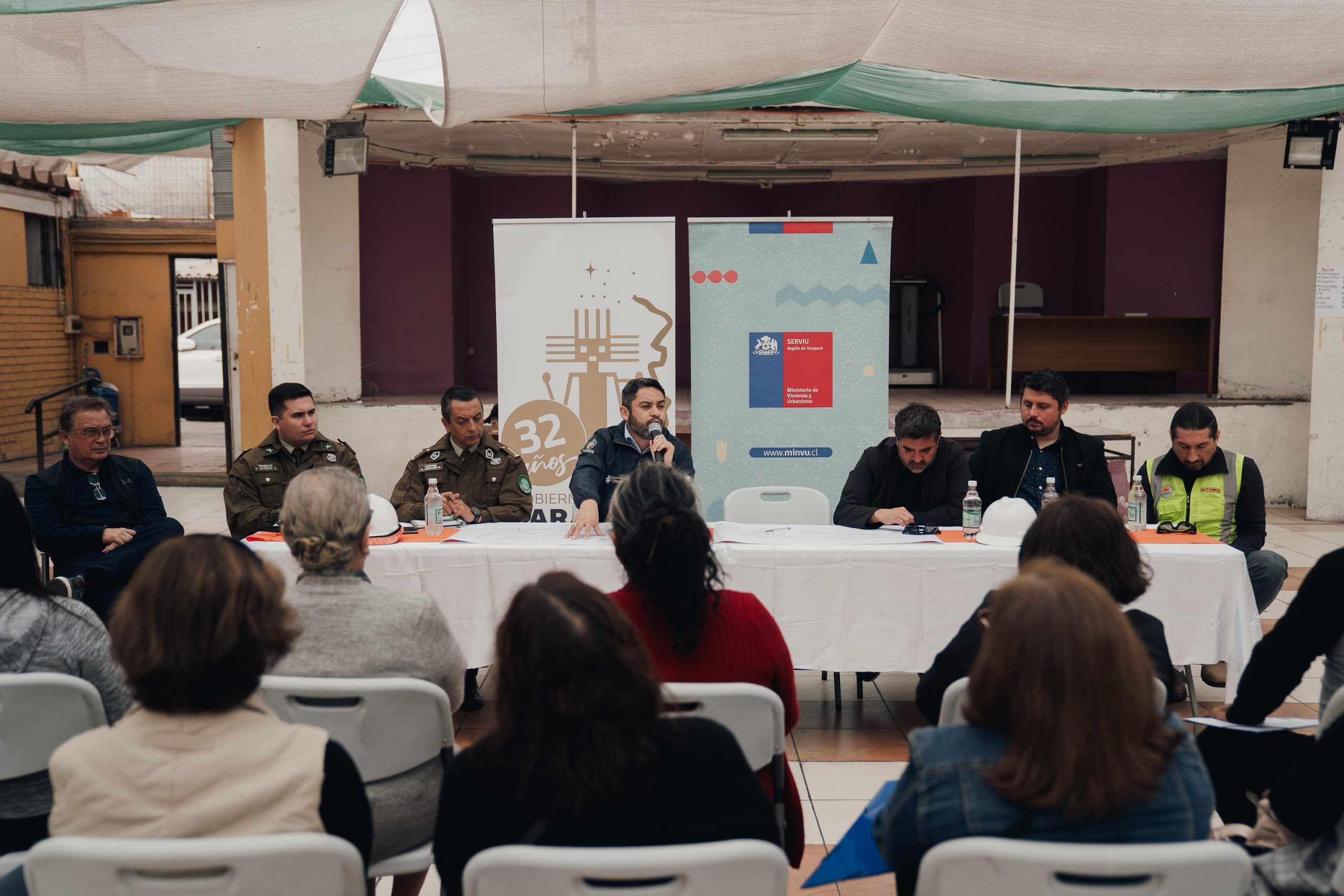 La jornada de coordinación se llevó a cabo en la sede social de la población Nueva Victoria y fue encabezada por el gobernador regional José Miguel Carvajal, junto al alcalde de Iquique, Mauricio Soria, y autoridades del MINVU, Transportes y Carabineros, además de dirigentes vecinales del sector.