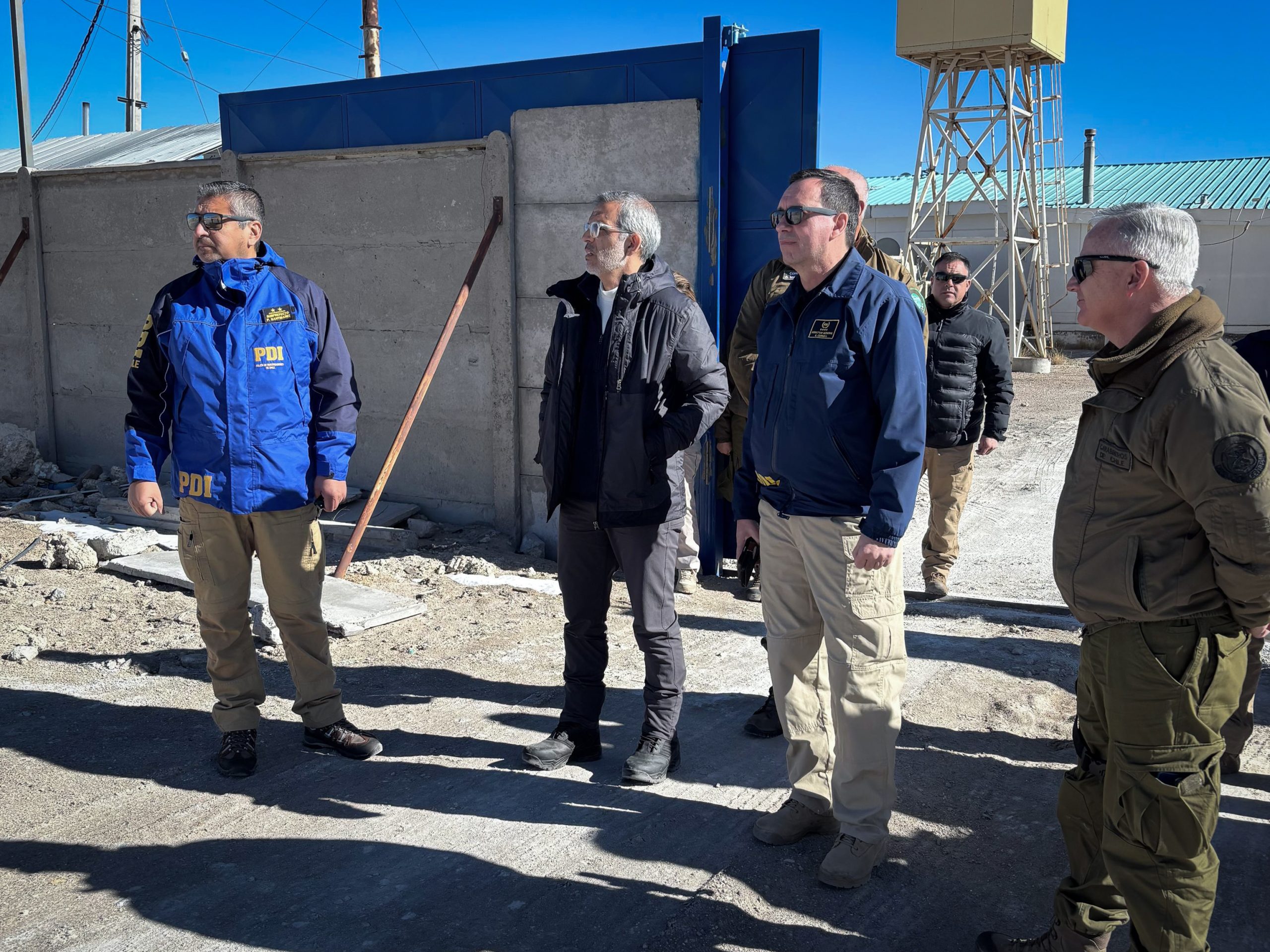 En su visita al norte del país, la autoridad estuvo acompañada por el general director de Carabineros, Marcelo Araya, y el director general de la Policía de Investigaciones (PDI), Eduardo Cerna.