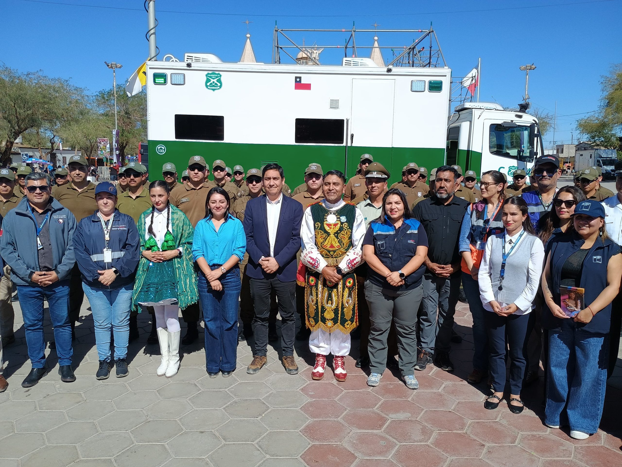 El contingente policial fue presentado oficialmente el jueves en la explanada del Santuario, durante una ceremonia encabezada por el subsecretario del Interior, Víctor Ramos; la delegada presidencial de Tarapacá, Ivonne Donoso; la delegada provincial del Tamarugal, Camila Castillo; la seremi de Seguridad Pública, Ana María Peralta; y el prefecto de Carabineros de Iquique, Adrián Andrade, junto a autoridades regionales, comunales y representantes de servicios públicos.