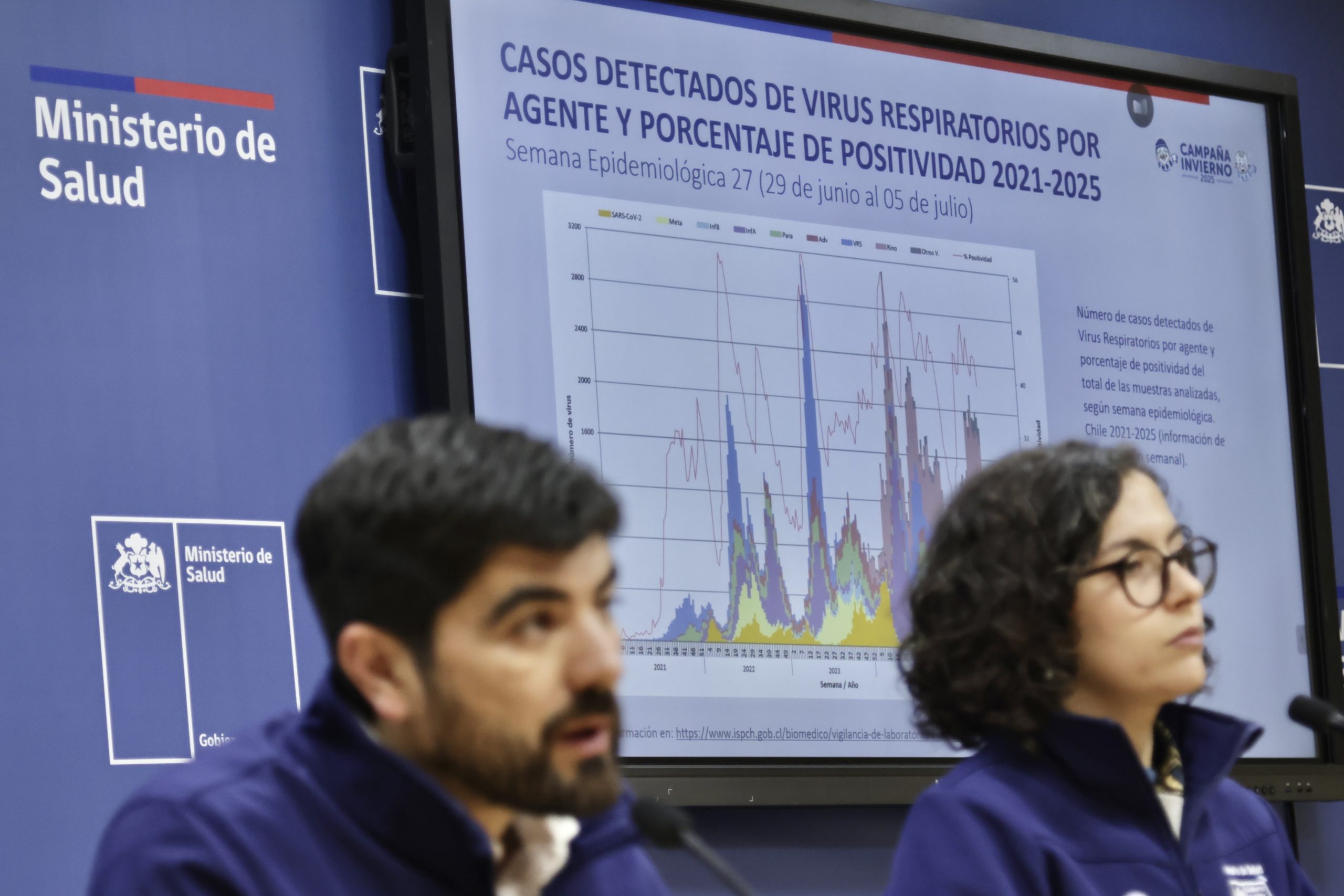 El Ministerio de Salud informó que, durante la semana epidemiológica 27 —comprendida entre el 29 de junio y el 5 de julio—, la positividad de las muestras de virus respiratorios alcanzó un 39,2%, una leve disminución respecto al 43,1% registrado en la semana anterior.