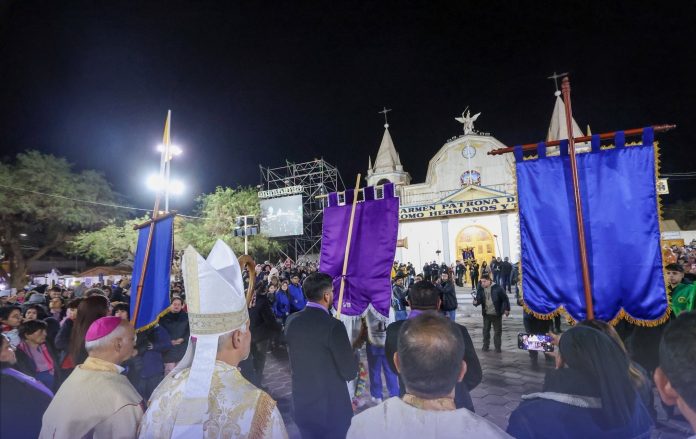 Desde el sector de la Cruz del Calvario, centenares de fieles, promesantes y bailarines ingresaron al Santuario en una ceremonia encabezada este año por la Asociación de Bailes Religiosos “Padre José Donoso” de Antofagasta, quienes cruzaron las puertas sagradas como “peregrinos de esperanza y testigos del Señor”.