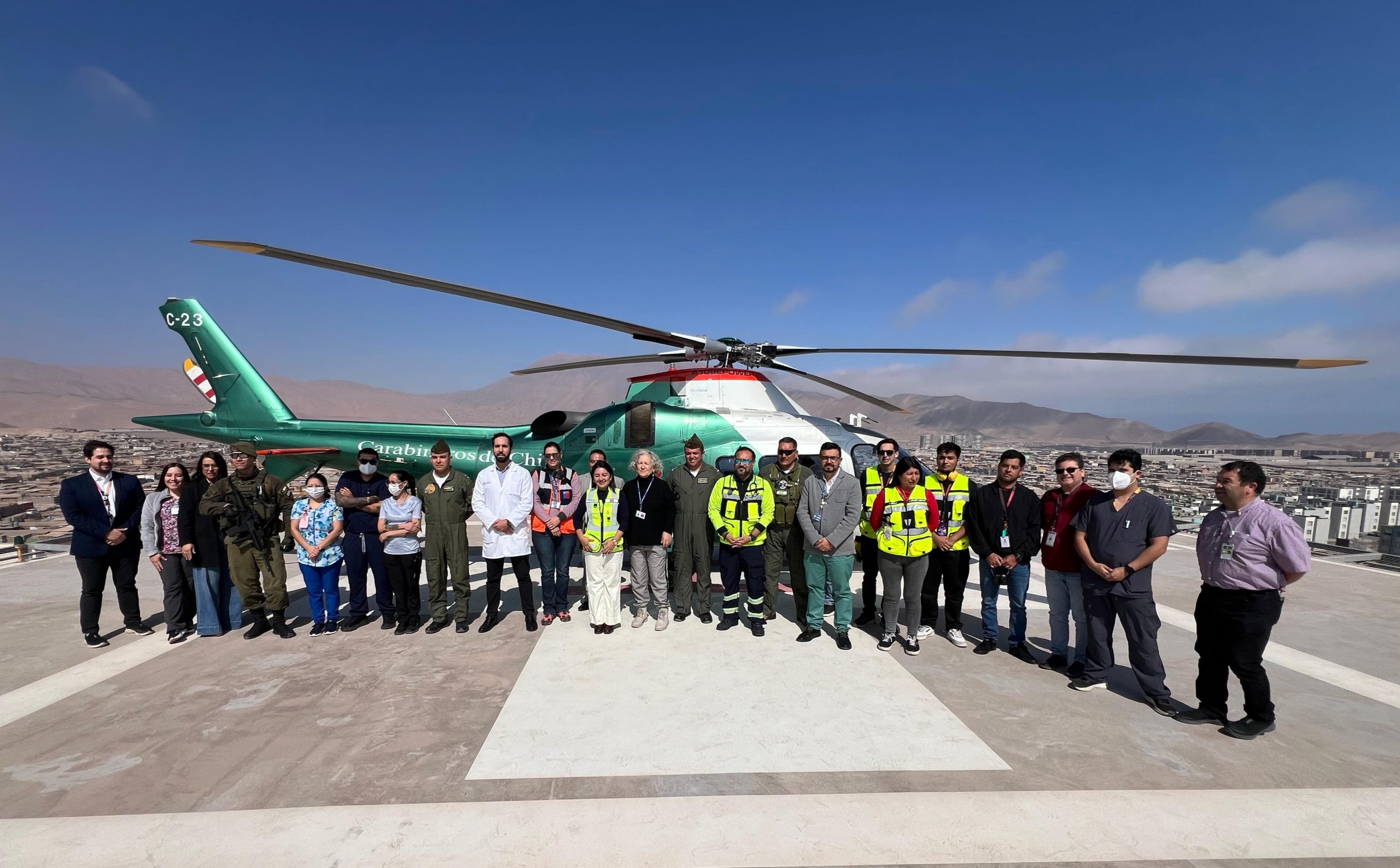 En este mismo sentido se realizó el primer aterrizaje en el helipuerto del Hospital de Alto Hospicio, en el que participó personal del recinto asistencial, Servicio de Salud de Tarapacá y Senapred, inaugurando de esta forma esta instalación.