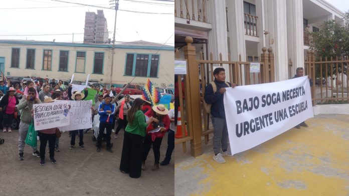 Con una serie de pancartas alusivas a sus demandas, los pobladores manifestaron que “Bajo Soga necesita urgente una escuela. Necesitamos jardín infantil y colegio en Bajo Soga (…) nuestro niños sin colegio en Bajo Soga”.