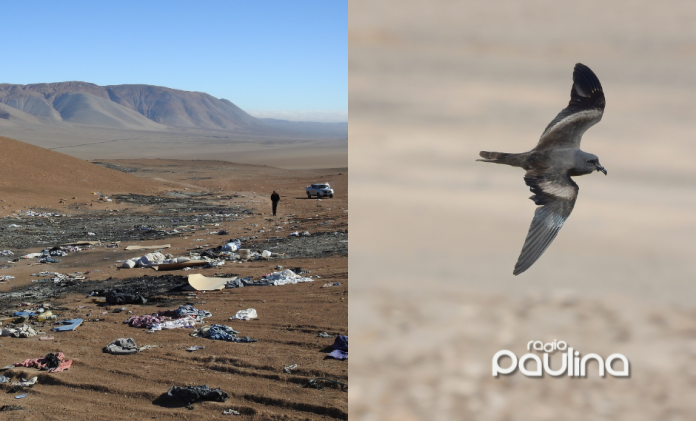 Uno de los puntos más críticos es la zona de Caleta Buena, en las afueras de Alto Hospicio, donde se han detectado enormes vertederos textiles ilegales, conocidos como “cementerios de ropa”. Según la Red de Observadores de Aves y Vida Silvestre de Chile (ROC), estos basurales ya afectan directamente los nidos de la golondrina de mar, cubriéndolos y obstruyéndolos con prendas arrastradas por el viento.