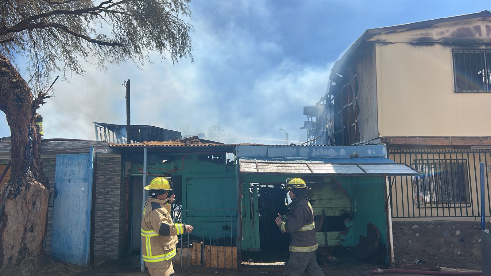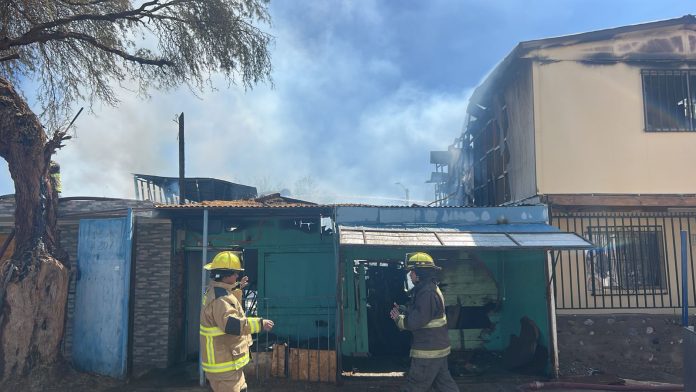 La primera alarma de incendio se reportó cerca de las 10:30 horas, movilizando a unidades de Pozo Almonte y Pica que llegaron hasta el poblado para sofocar las llamas y controlar el siniestro.