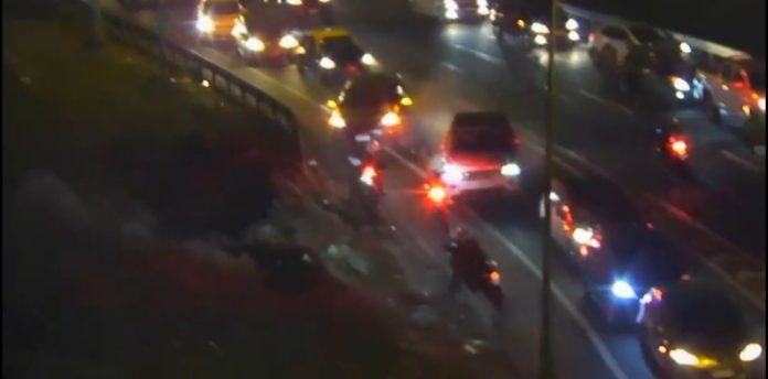 Tras los disparos, el vehículo desvió su trayectoria, colisionó con otro automóvil y arrolló una motocicleta policial, causando una fractura grave a uno de los funcionarios. La persecución terminó cuando el auto perdió velocidad por la rotura de un neumático, permitiendo la detención de los tres ocupantes y la verificación de que el chasis del vehículo correspondía a un automóvil con encargo por robo y con placas patentes falsas.
