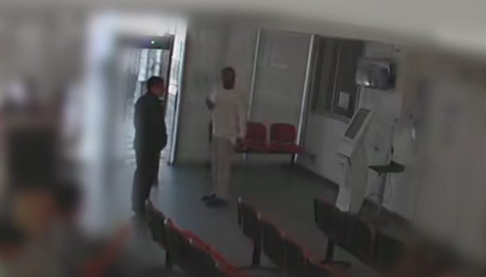 El hecho fue presenciado por funcionarios y guardias de seguridad, motivando la intervención del personal para retirar al sujeto del lugar.