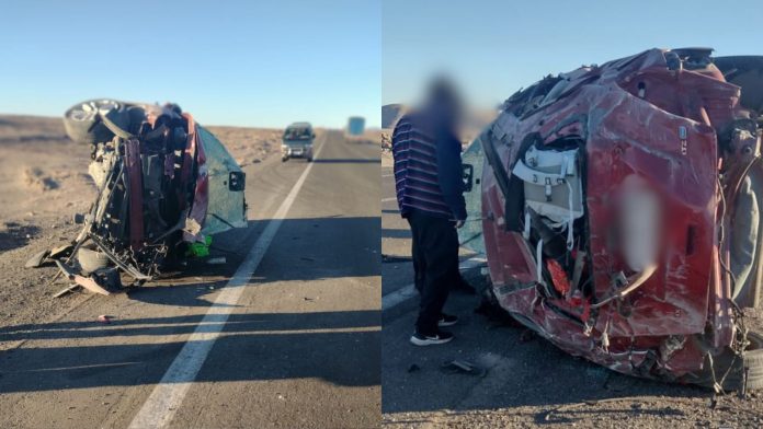 En la mañana del sábado 16 de agosto, un vehículo menor volcó en el kilómetro 1.903 de la Ruta 5 Norte, comuna de Huara, dejando a la conductora del móvil fallecida y una pasajera lesionada de gravedad.