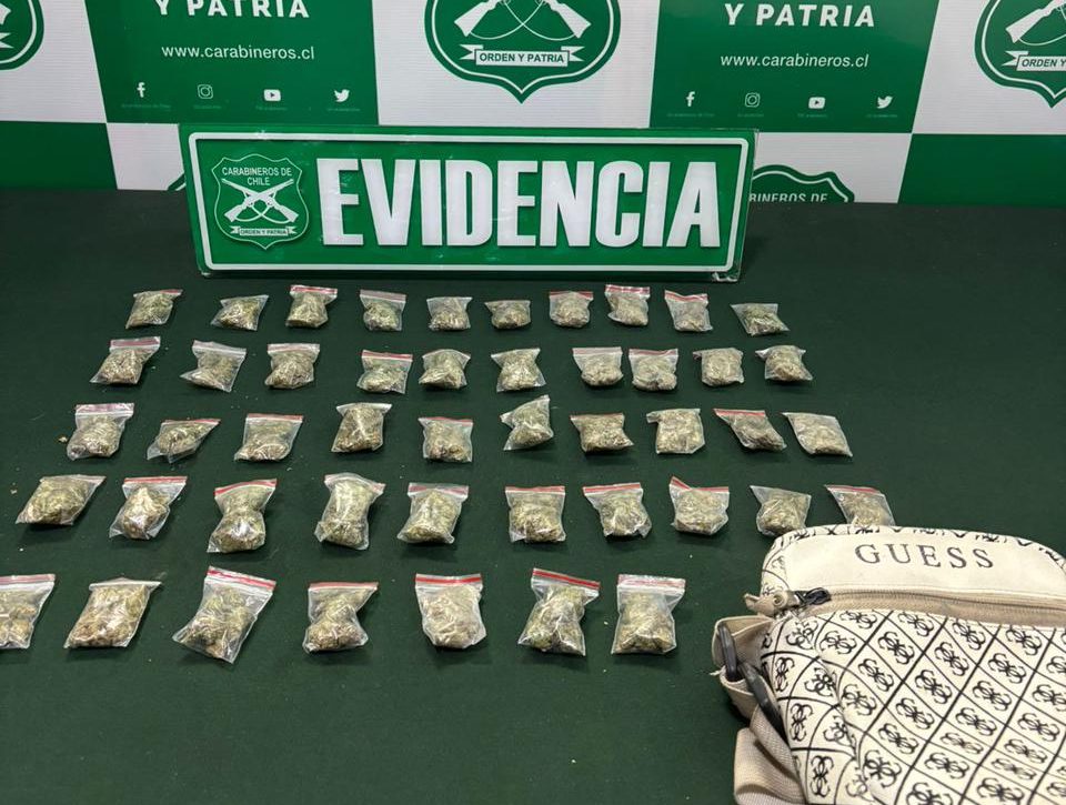 Al revisar el automóvil, Carabineros encontró un bolso con 47 bolsas que contenían 134 gramos de marihuana, lo que fue corroborado por el personal especializado del OS-7. Tanto la droga como el vehículo fueron incautados.