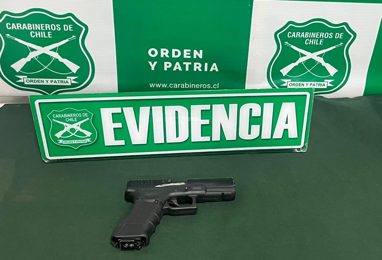 Durante el control, los funcionarios detectaron que el conductor escondía bajo su ropa una pistola negra con marca y número de serie borrados. El arma fue incautada y remitida a la Sección de Criminalística de Carabineros (Labocar) para los peritajes correspondientes.