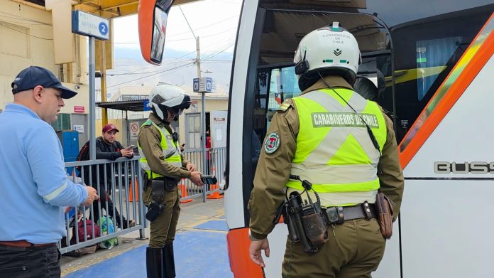 Carabineros junto a la Seremi de Transportes, Conaset y Senda efectuaron una fiscalización en el terminal de buses de Iquique, para fiscalizar el cumplimiento de la normativa, estado de los vehículos y de los conductores de estos.