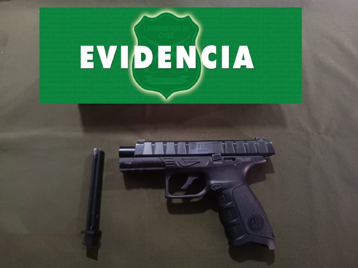 Al llegar al lugar, uno de los sujetos arrojó un objeto bajo un vehículo estacionado, acción que fue detectada por los carabineros. Tras la fiscalización, se constató que se trataba de una pistola a balines.
