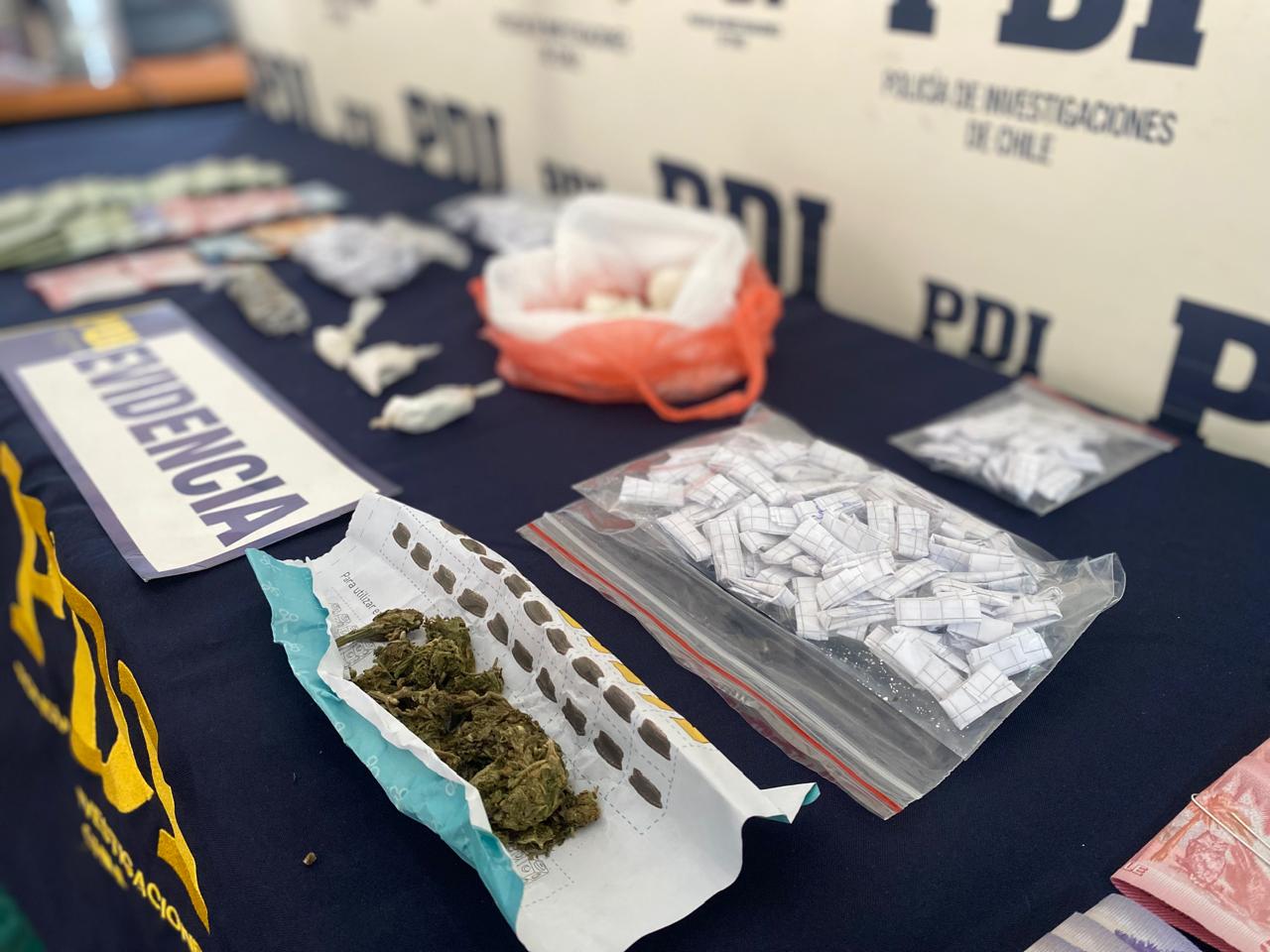 Detectives de la Brigada Antinarcóticos y Contra el Crimen Organizado de la PDI Arica desarrollaron un operativo que permitió desarticular 5 puntos de venta de drogas, y culminó con 4 imputados detenidos y diversas drogas incautadas que estaban dosificadas y listas para su comercialización.