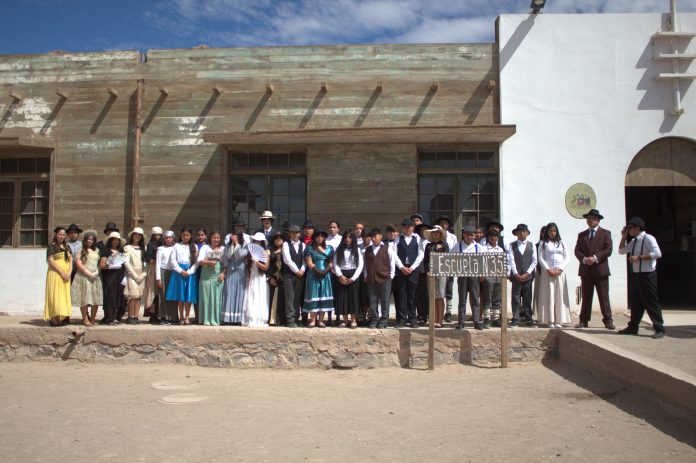 Durante la visita, los escolares —vestidos con vestimentas típicas del ciclo salitrero— recorrieron espacios emblemáticos como la escuela, el teatro, la plaza, la pulpería y las calicheras, registrando fotografías y videos que formarán parte de una muestra bilingüe en español e inglés, que se presentará a fines de octubre en el establecimiento.