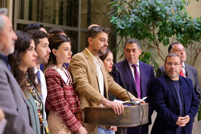 El libelo fue firmado por los diputados Daniel Manouchehri (PS), Camila Musante (ind. PPD), Boris Barrera (PC), Eric Aedo (DC), Javiera Morales (FA), Cosme Mellado (PR), Marcos Ilabaca (PS) y Luis Malla (PL), entre otros.