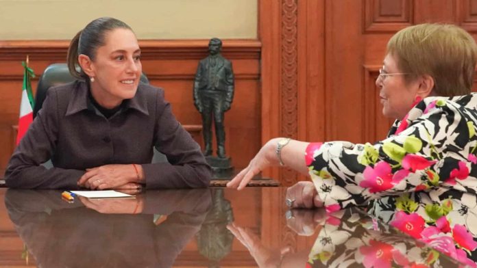 En la jornada del martes la presidenta de México, Claudia Sheinbaum, se reunió con la expresidenta Michelle Bachelet en el Palacio Nacional, sede de gobierno ubicada en Ciudad de México.