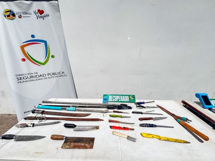 Un operativo conjunto entre Carabineros y funcionarios de la Municipalidad de Alto Hospicio permitió el retiro de un arsenal de armas blancas, droga y objetos presumiblemente robados desde dos inmuebles abandonados utilizados como focos delictivos en la comuna.