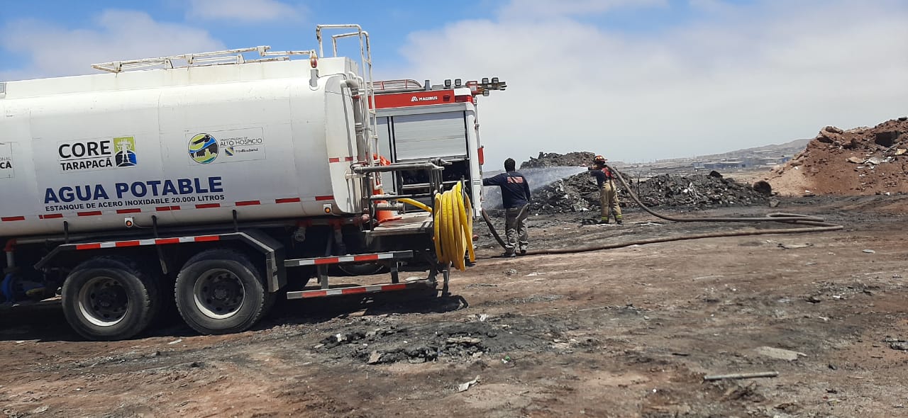 El municipio dispuso cinco camiones aljibe, dos cargadores frontales y un bulldozer para apoyar las labores de extinción. En tanto, Carabineros de la Tercera Comisaría colaboró en el resguardo del perímetro para evitar nuevos focos y garantizar la seguridad del personal en el lugar.