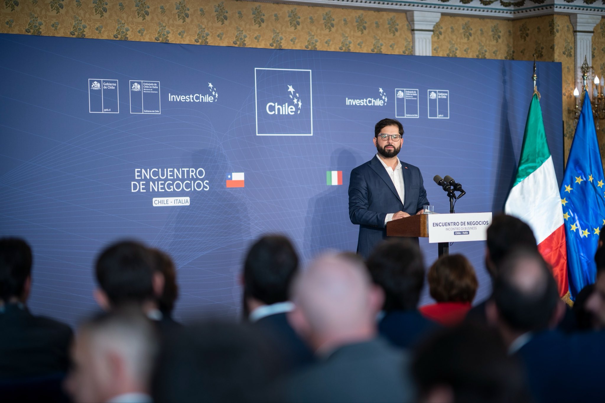 En el marco de su visita a Italia, el presidente Gabriel Boric encabezó este miércoles el Encuentro de Negocios Chile – Italia. La actividad tuvo el objetivo de profundizar en las relaciones comerciales entre ambos países, abordar las principales oportunidades y desafíos en torno a la inversión.