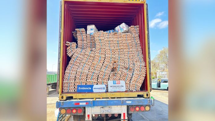 De manera conjunta, Aduanas y SAG realizaron la apertura y revisión detallada de todo el cargamento, descubriéndose el millonario contrabando: 400 mil huevos de origen boliviano, 480 cajetillas de cigarrillos marca Gift, 390 unidades de plaguicidas, 870 kilos de frutas y 240 unidades de rollos de papel higiénico.