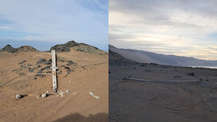 El hecho, ocurrido frente a playa El Águila, implicó la sustracción de conductores de cobre y la caída de 19 postes, producto de acciones atribuibles a un grupo organizado.