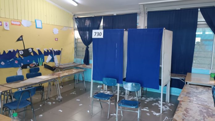 Según el presidente del gremio, Mario Aguilar Arévalo, los reportes recibidos desde regiones como Valparaíso, O’Higgins, Maule, Arica y Parinacota, Metropolitana y Los Lagos dan cuenta de salas desordenadas, baños sucios, ausencia de sanitización, materiales electorales abandonados —como urnas y casetas— e incluso presencia de personal uniformado dentro de los recintos.
