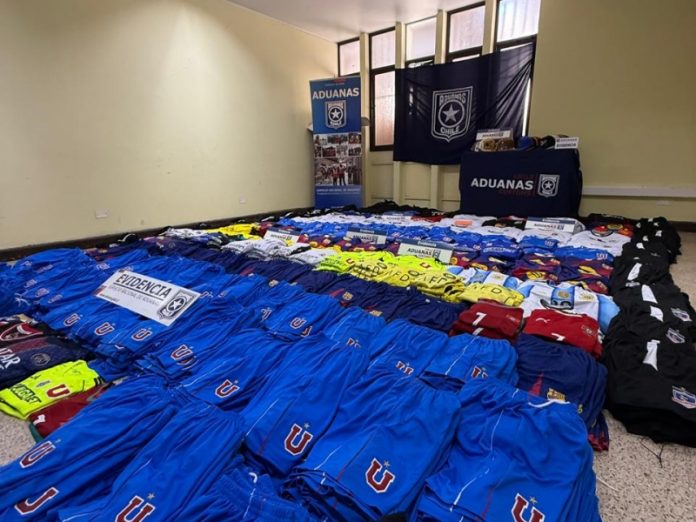 Durante la revisión, el equipo de Aduanas detectó ocho sacos que contenían equipos deportivos de Colo Colo, Universidad de Chile, PSG, Barcelona y de las selecciones de Argentina, Francia y Portugal, todos sin la documentación que acreditara su origen legal.