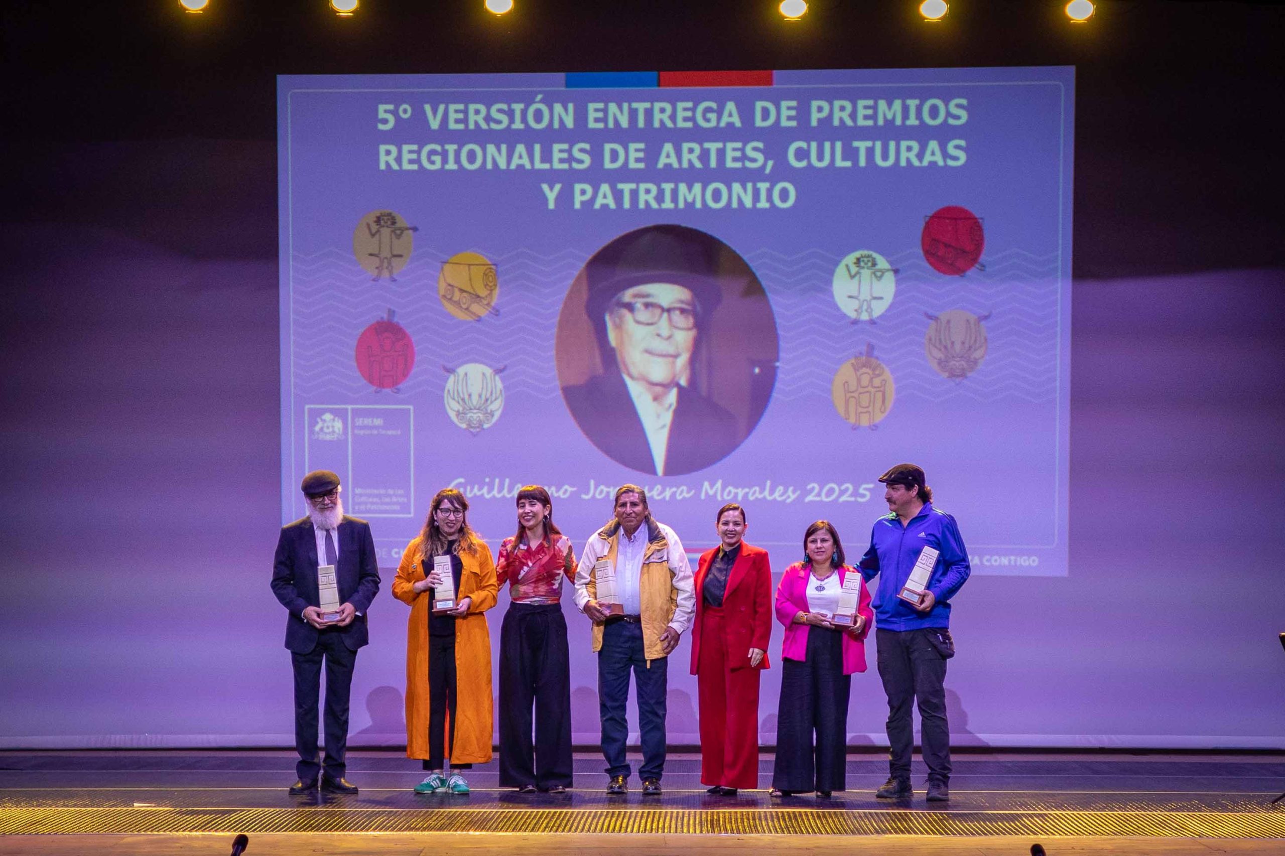 En el Teatro Municipal de Iquique y con la presencia de la ministra de las Culturas, las Artes y los Patrimonios, Carolina Arredondo Marzán, tuvo lugar la entrega de distinciones de la quinta versión de los Premios de Artes, Culturas y Patrimonio “Guillermo Jorquera Morales”.