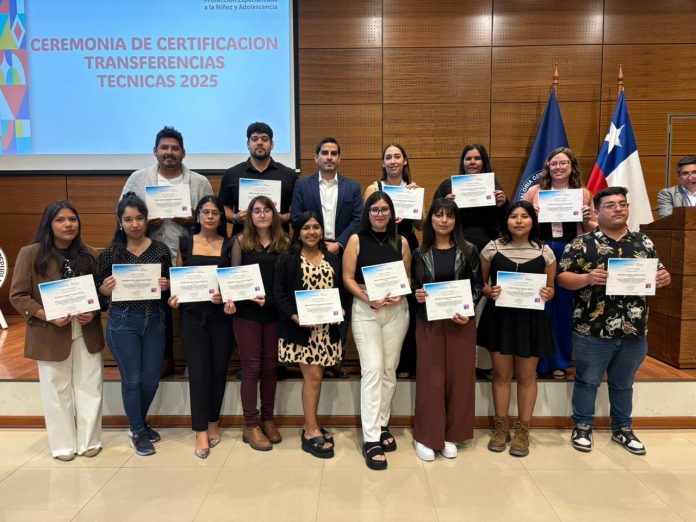 La actividad incluyó la entrega de certificados en cursos clave como “Operacionalización de Enfoques Transversales”, “Preparación y Acompañamiento de NNA en Vida Interdependiente”, “Entrenamiento en Técnicas para la Intervención Familiar”, “Seminario de Adopción y Acogimiento Familiar”, “Sello Diagnóstico Clínico Especializado (DCE)”, “Acompañamiento Familiar Territorial y Prevención Focalizada (AFT-PF)”, además de la certificación como Gatekeepers para la prevención del suicidio.
