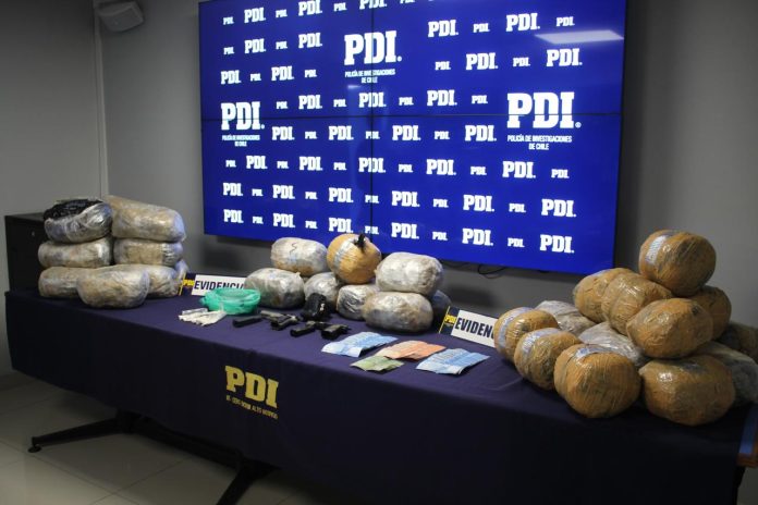 “Se realizaron diversas técnicas de investigación y medidas intrusivas, que culminaron el día de ayer con la detención de tres ciudadanos chilenos y la incautación de más de 45 kilos de cannabis sativa, más de 200 gramos de pasta base de cocaína, aproximadamente 400 mil pesos en efectivo, un arma de fuego y un elemento similar a un arma de fuego, entre otras especies”, detalló la fiscal Gómez.