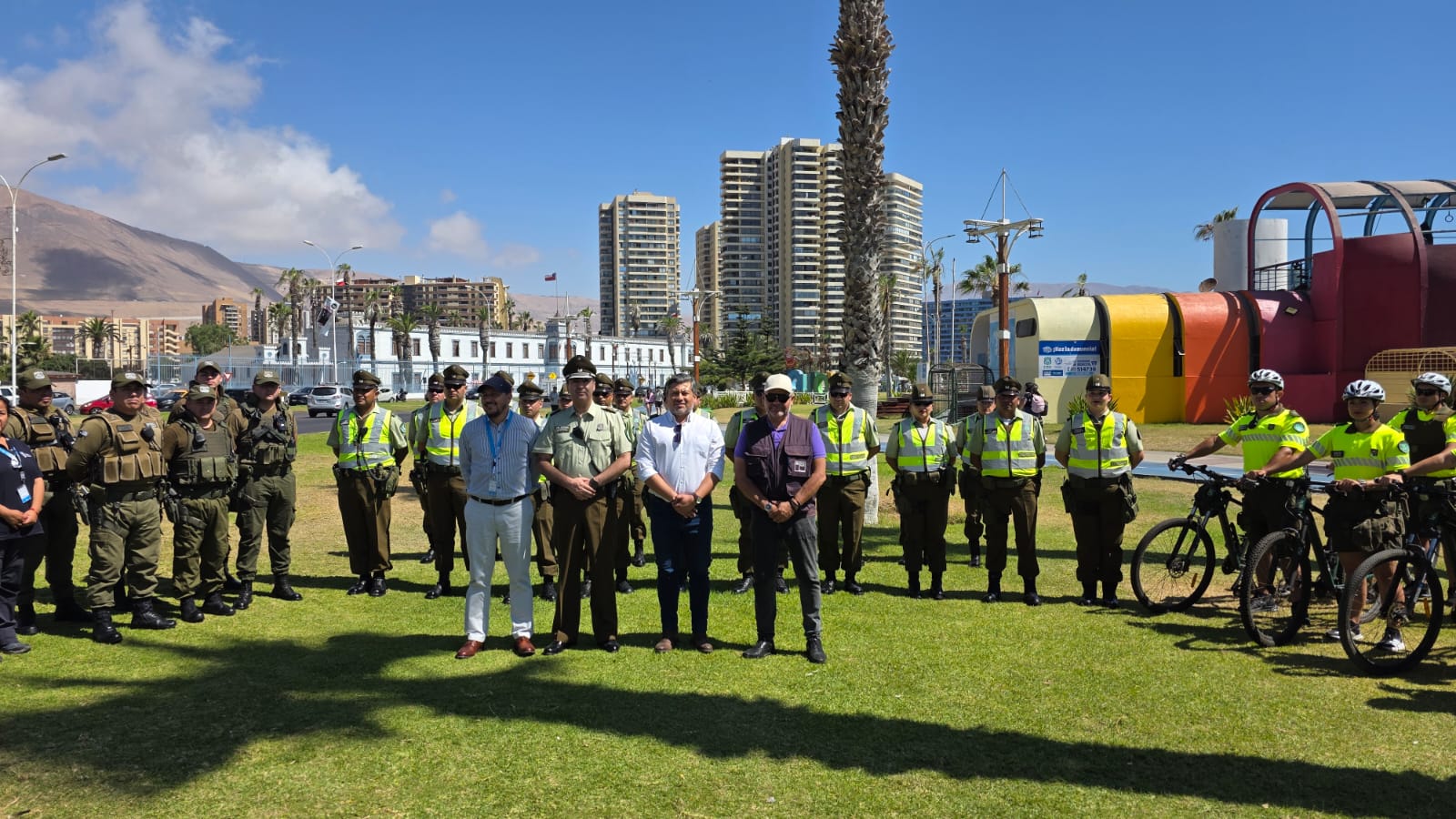 Con un despliegue de recursos en pleno borde costero de Cavancha y acompañados por autoridades, Carabineros dio la bienvenida al nuevo contingente que llegó a la región para potenciar sus servicios en el marco del Plan Verano Seguro.