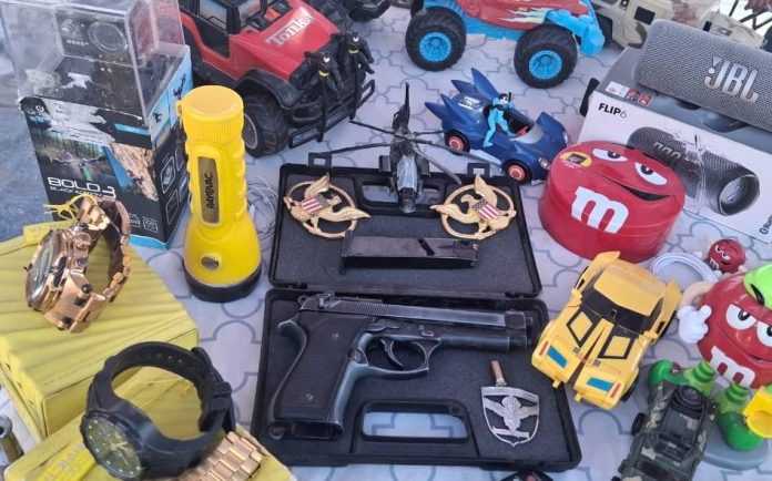 En ese contexto, personal de la Sección de Investigación Policial (SIP) de la Tercera Comisaría de Alto Hospicio fiscalizó al imputado de iniciales P.D.N.G., chileno, de 55 años, quien en uno de los puestos del recinto exhibía y ofrecía a la venta una pistola de color negro con su respectivo cargador, la que se encontraba además con su caja de traslado. Por tratarse de un delito flagrante, el sujeto fue fiscalizado y detenido por personal policial.