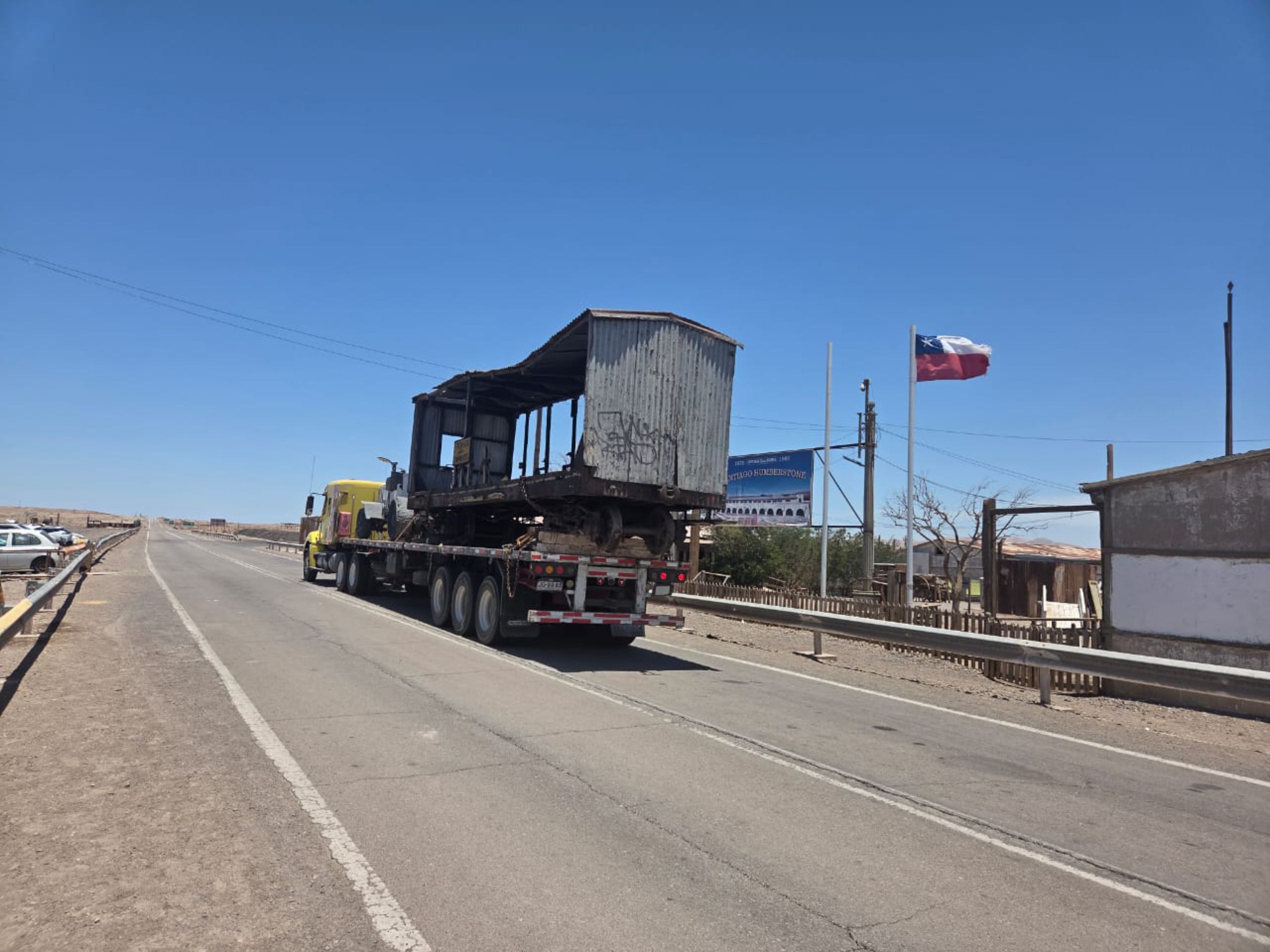 Cuatro elementos catalogados como “maquinaria pampina” y que por años permanecieron en el sector de la rotonda El Pampino, como una muestra con objetos auténticos utilizados durante la industria del salitre, fueron trasladas a la Salitrera Humberstone para formar parte del Museo de Sitio.