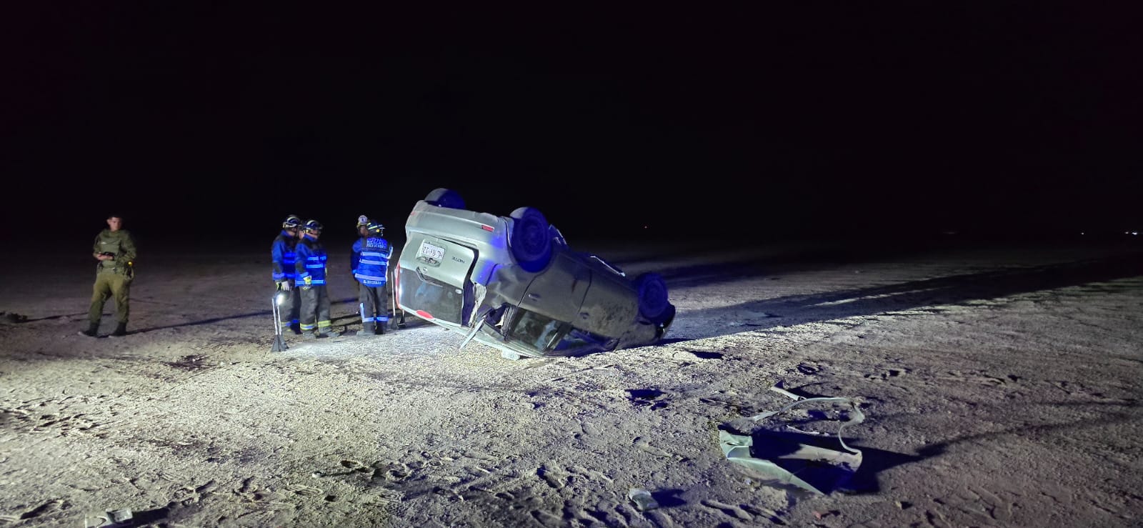 Un accidente de tránsito de tipo volcamiento se registró durante la madrugada de este jueves en la Ruta 5 Norte, específicamente en el kilómetro 1.813, a la altura del cruce de Humberstone con la Ruta 16, en la Región de Tarapacá.