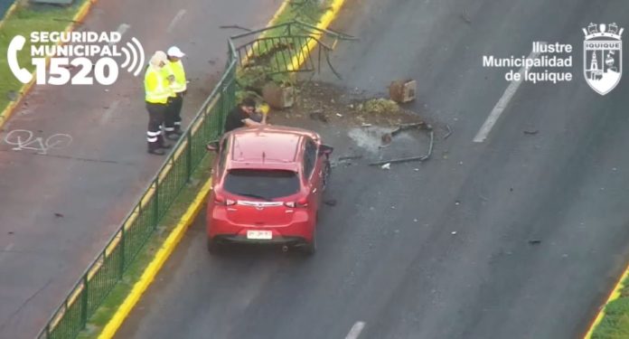 El hecho ocurrió en avenida Arturo Prat, donde un vehículo que circulaba de norte a sur colisionó contra las barreras de contención de la vía. Al llegar al lugar, personal de la 4ª Comisaría Cavancha fiscalizó al conductor y detectó evidentes signos de consumo de alcohol.