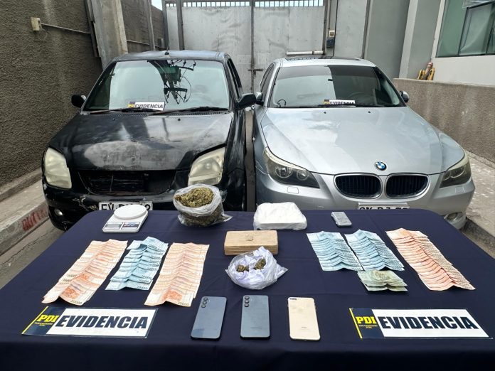 “Se observó a dos conductores de vehículos particulares quienes de manera deliberada intercambian un bulto pequeño atribuible al tráfico de drogas, por lo que fueron sometidos a un control de identidad, encontrando en el interior de uno de los vehículos otro bulto de similares características, además de tres papelinas con una sustancia en polvo de color blanco, reconociendo en esos momentos los controlados que se trataban de marihuana y cocaína”, indicó el subprefecto Juan Huenchumán, jefe de la Bicrim de la PDI Arica.